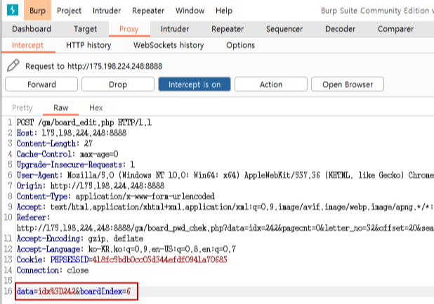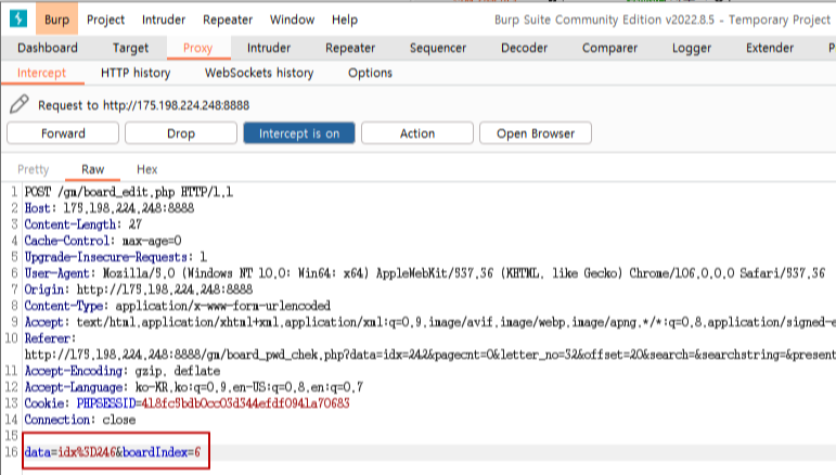 자료실에 웹쉘 파일을 올리려고 하면 "PHP, HTML 파일은 보안상 업로드할 수 없습니다" 경고 메시지가 보이면서 파일을 업로드를 할 수가 없다.
