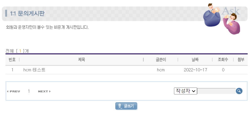 1:1 문의게시판에 글쓰기(공격자)
