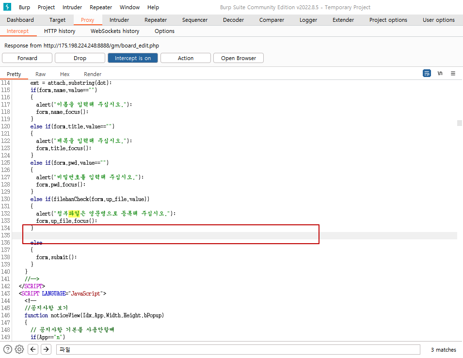 Response에서 파일 확장자를 검사하는 부분을 수정 찾아 수정을 한다.