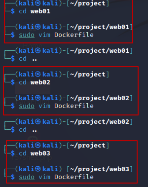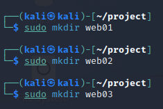3개의 도커파일을 저장할 폴더를 생성 (web01, web02, web03)