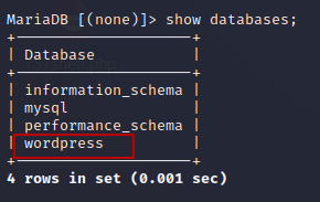 docker-compose.yaml 파일에 있는 내용 중 MYSQL_DATABASE: wordpress이 잘 실행되었는지 확인
